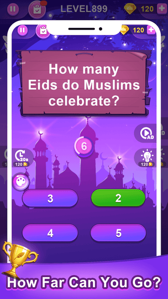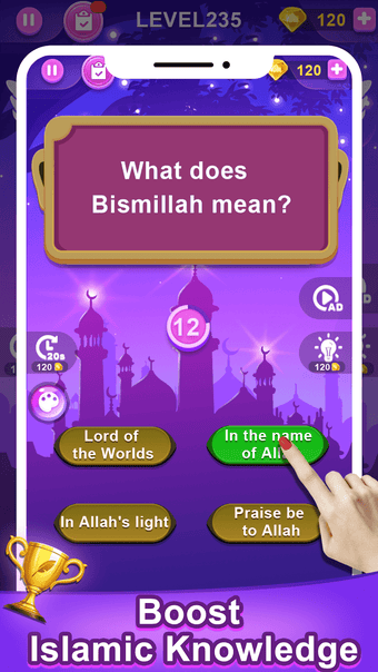 تتمتع اللعبة بواجهة سهلة الاستخدام مع موسيقى مهدئة تساعد على تخفيف الضغط من العالم الخارجي. اختبار إسلامي هو تطبيق تعليمي مناسب للكبار والأطفال على حد سواء. مع وجود أكثر من 1500 اختبار، سيتحدى اللاعبون ثلاثة اختبارات عشوائية لكل مستوى، وعليهم الضغط على الإجابة الصحيحة في وقت محدود. سيتلقى اللاعبون مكافأة غامضة بعد اكتمال المستوى بأكمله. يمكنهم أيضًا استخدام "الضوء" لإزالة إجابة خاطئة واستخدام "الماس" لشراء 20 ثانية إضافية إذا انتهى وقتهم.